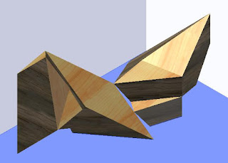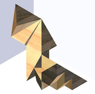 A composição da madeira como em dobraduras do origami, com a mesma peça definindo diferentes formas conforme o ângulo de posicionamento.