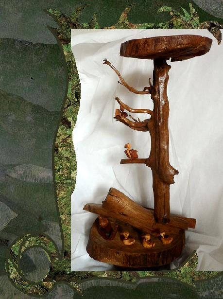 Cenários de vida intensa, a "Família", composta de uma pata e seus patinhos e um casal de pássaros observando o desenrolar curioso da maternidade. Após um arco coberto de flores e um pássaro pairando no centro, uma construção colorida à partir da diversidade das cores das madeiras.
