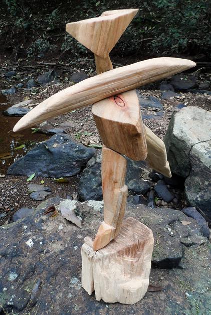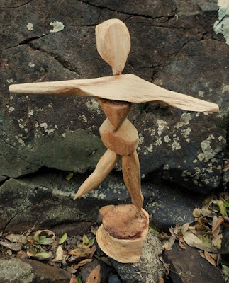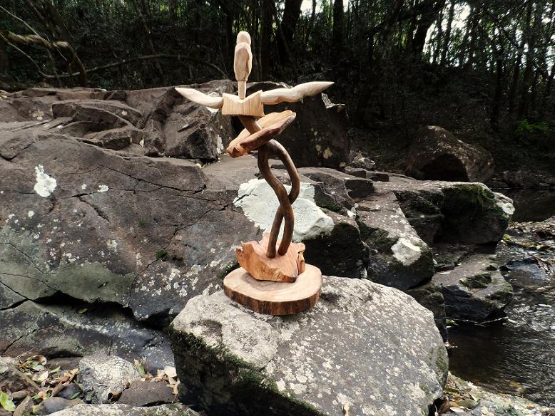 Uma Bailarina expressa sua leveza ao lado de uma pesada forma que observa seu giro com feições da madeira, um nó traz um ponto único e original.