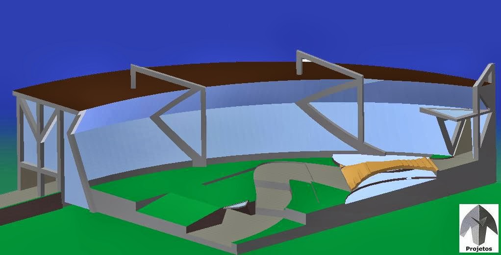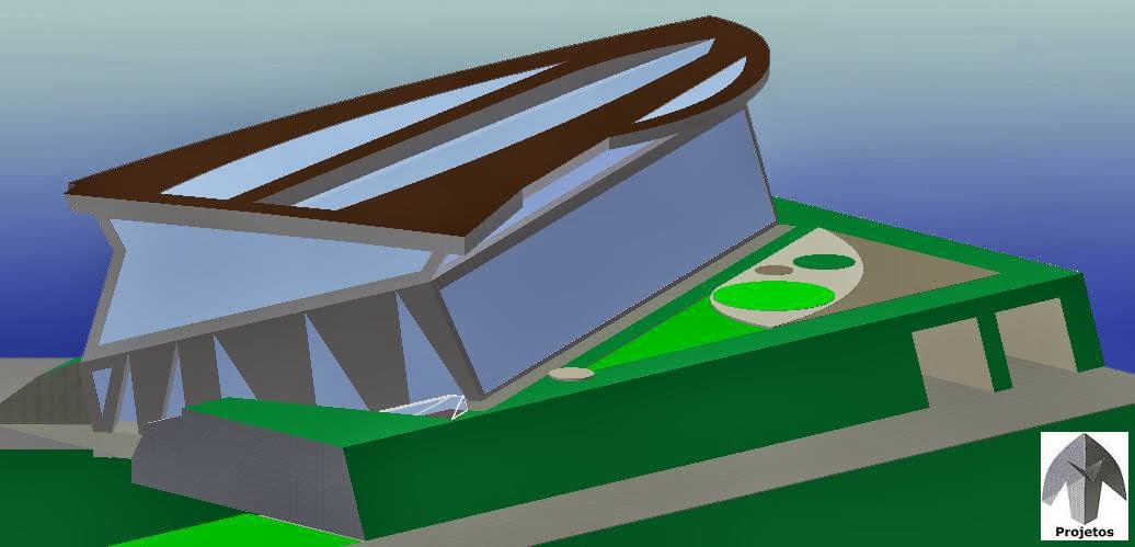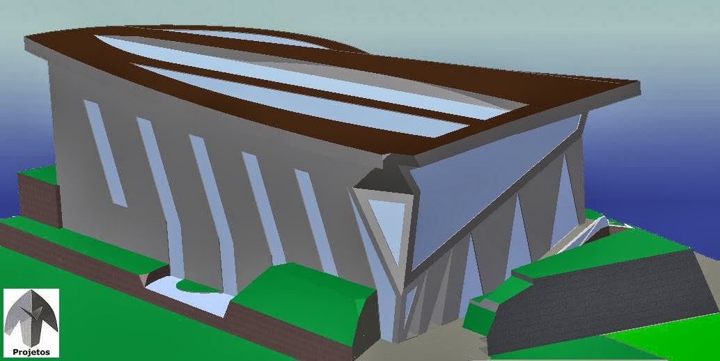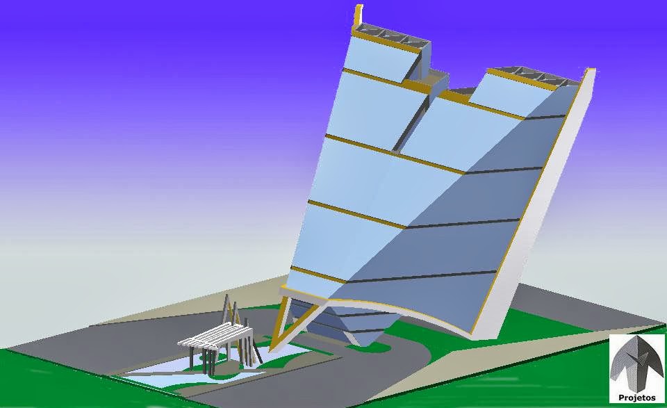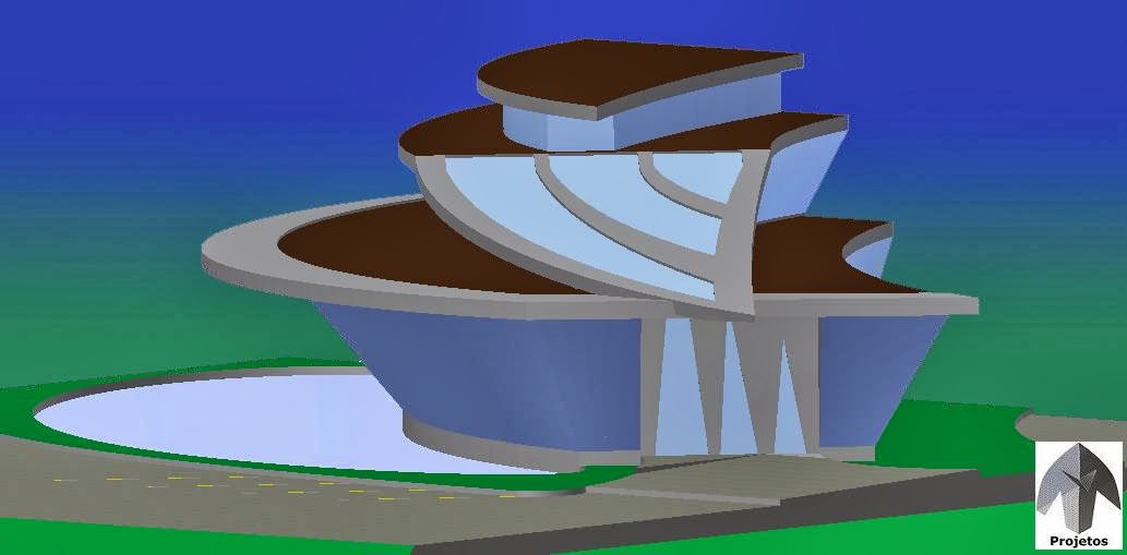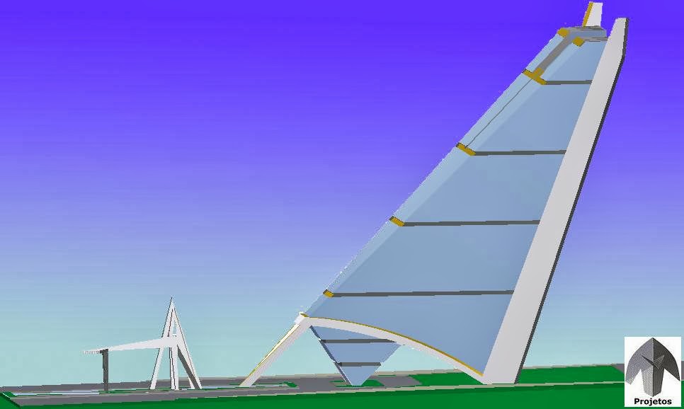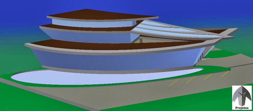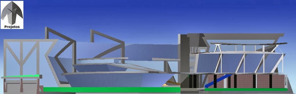 O primeiro projeto traz elementos conflitantes, os retângulos construtivos e uma gigantesca onda, unidos por uma estrutura curvolínea.