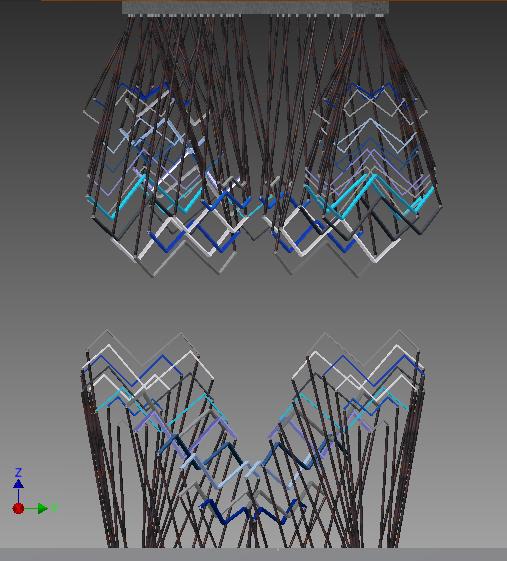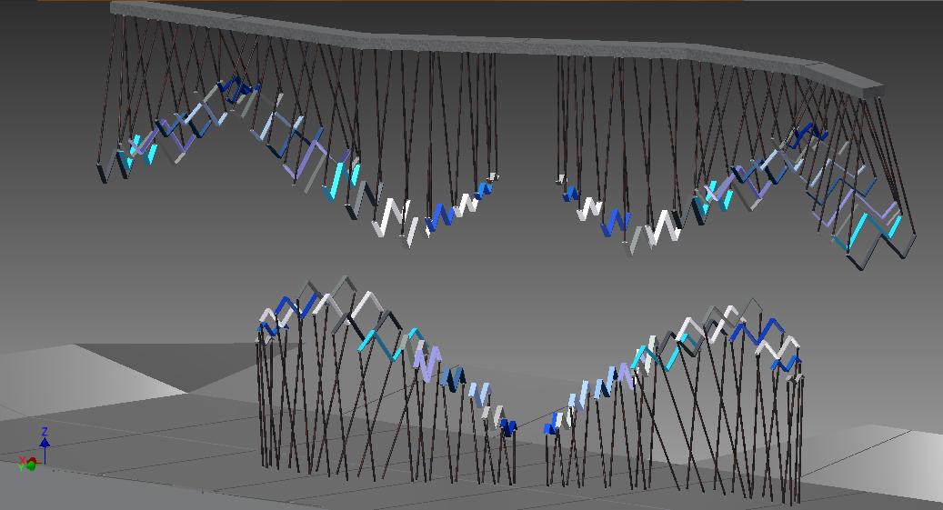 As projeções espaciais procuram relacionar nosso DNA com o vôo dos pássaros, estes não são livres, mas presos como metas, alvo de construção e expansão constante, os conjuntos fixam no ar e no chão para lembrar que o que não vemos é ainda maior do que o que sabemos.
